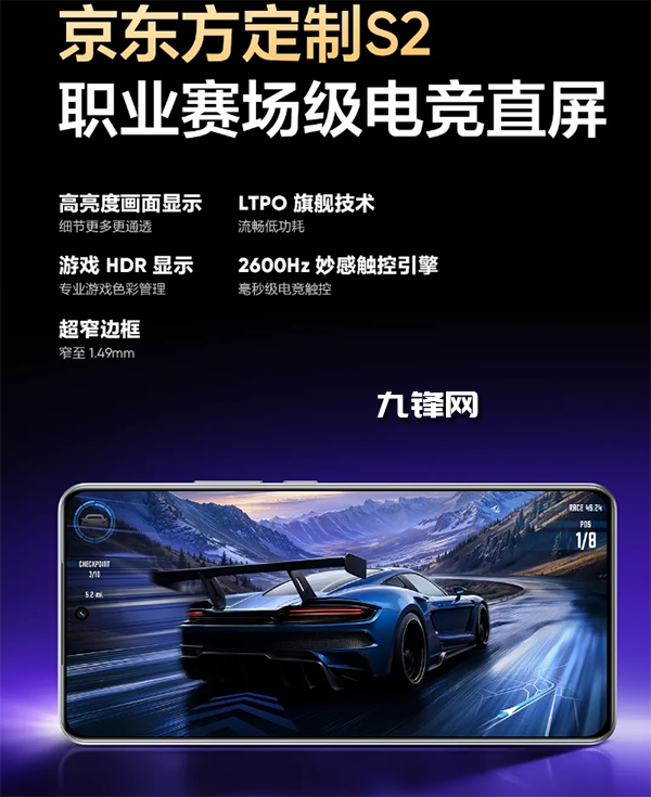 屏幕上采用的是直屏設(shè)計,京東方S2材質(zhì),專業(yè)游戲色彩管理,1.49毫米超窄邊框,毫秒級電競觸控,晶鎧玻璃蓋板,抗摔又耐劃。
