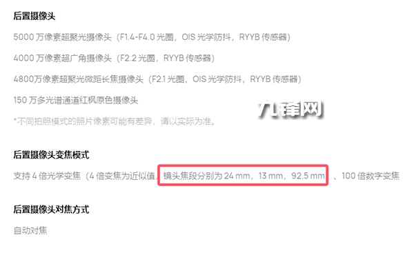 焦距方面,主攝是24mm,超廣角是13mm,長焦是92.5mm。