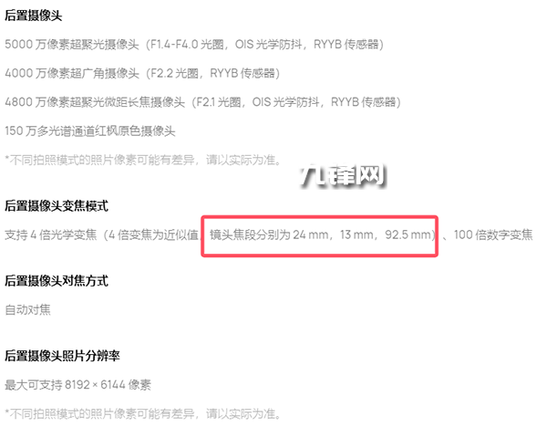 焦距方面,主攝是24mm,超廣角是13mm,長焦是92.5mm。