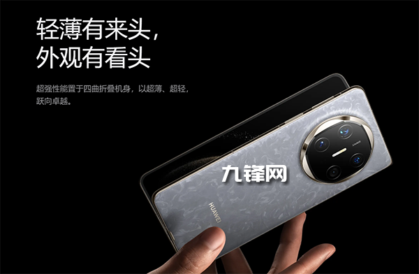 在LTPO2.0技術(shù)的加持下,配合華為臨境顯示技術(shù),進(jìn)一步提升了屏幕的顯示效果和性能表現(xiàn)。在折疊狀態(tài)下,手機(jī)厚度僅9.85mm,展開(kāi)狀態(tài)厚度更是薄至4.6mm,整機(jī)重量239克。