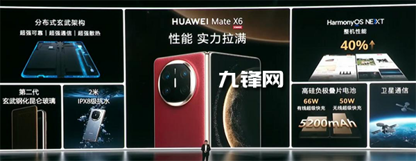 華為Mate X6系列支持2米IPX8級抗水,內(nèi)置5200mAh電池,支持66W有線、50W無線快充。