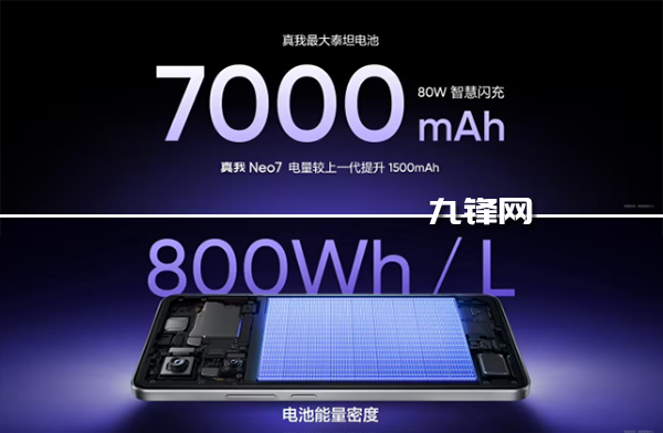 之前真我GT Neo5的240W快充創(chuàng)造了量產手機的充電功率巔峰,而這次真我Neo7在8.5mm左右的機身內塞入7000mAh電池,電池能量密度還提升至800Wh/L,更是從根本上讓人沒有續(xù)航焦慮。