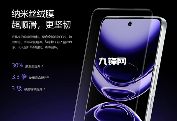 耐用性方面,真我Neo7配備“納米絲絨電競保護(hù)膜”,號(hào)稱順滑度提升30%、使用壽命提升3.3倍、硬度等級(jí)提升3級(jí)。