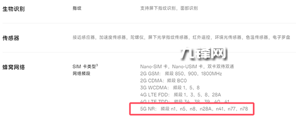 5G頻段:n1,n5,n8,n28A,n41,n77,n78。