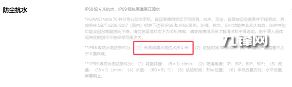 華為Mate70支持的是IP68級防水,并且能抗4米水深,并且還支持IP69級抗高溫高壓噴水。