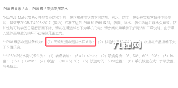也就是說(shuō),華為Mate70 Pro通過(guò)IP68認(rèn)證,具有高達(dá)6米的防水性能,還支持IP69耐高溫性能和高壓水噴霧性能。