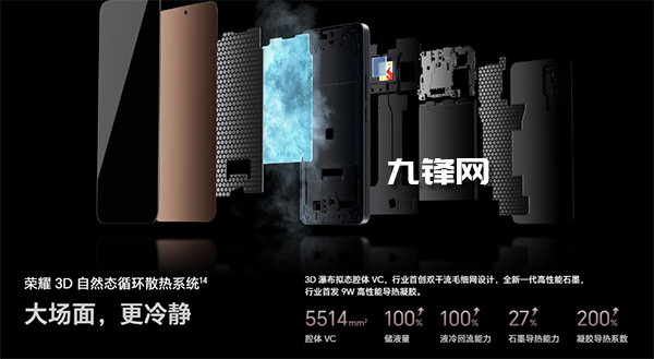 5514mm2VC(行業(yè)首創(chuàng)瀑布擬態(tài)VC腔體)+航天級高性能導(dǎo)熱凝膠+2K高性能石墨。