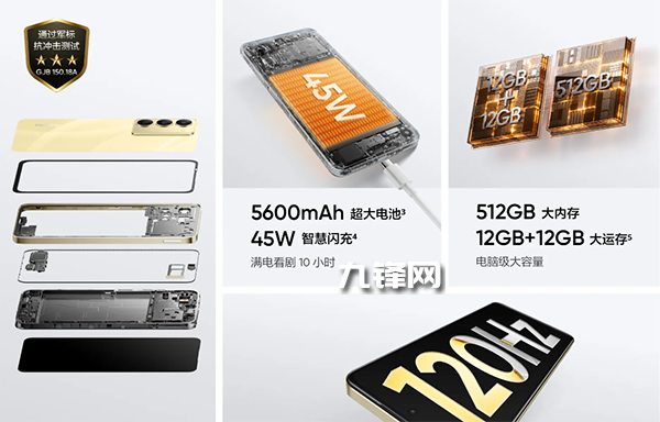其它:沒(méi)有NFC和紅外遙控,但支持IP68+IP69防塵防水、藍(lán)牙 5.3、軍工級(jí)防摔、Wi-Fi5、側(cè)邊指紋識(shí)別、單揚(yáng)聲器,單頻北斗(B1I)和單頻GPS(L1),最高2TB存儲(chǔ)卡擴(kuò)展,無(wú)網(wǎng)暢聊,搭載realmeUI5.0,內(nèi)置親情守護(hù)模式。