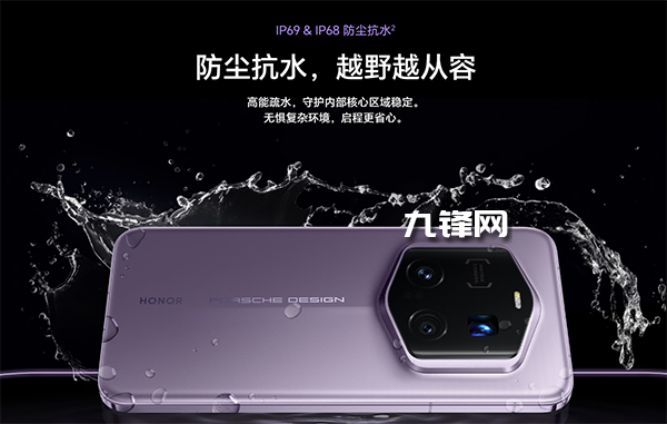 IP68+IP69級別,榮耀Magic7 RSR保時捷版支持配置拉滿的IP68和IP69防塵防高溫高壓噴水技術(shù),另外還有金剛巨犀玻璃10倍抗摔抗刮。