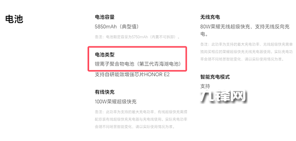 電池上配置的是5850mAh第三代青海湖電池,支持100W有線(xiàn)充電+80W無(wú)線(xiàn)充電,還有自研能效增強(qiáng)芯片HONOR E2。