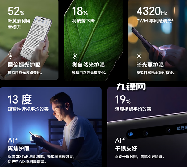 搭載京東方行業(yè)最高4320Hz超高頻PWM調(diào)光及圓偏振光技術(shù),宣稱(chēng)“在暗光環(huán)境下可大幅降低屏幕頻閃對(duì)眼睛的潛在危害”。