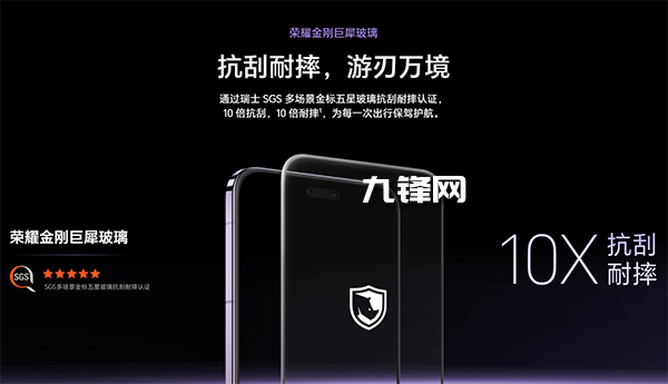 采用榮耀金剛巨犀玻璃,此處有別于標(biāo)準(zhǔn)版和Pro上用的巨犀玻璃,別小看了“金剛”兩個(gè)字,這塊玻璃相比巨犀玻璃,擁有高10倍的抗跌和耐磨能力。
