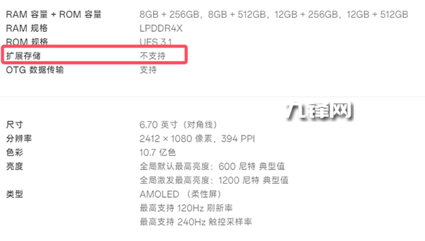 該機主打的防水抗摔,并且提供了8GB+256GB,8GB+512GB,12GB+256GB,12GB+512GB四個版本的存儲方案,并不支持存儲卡擴展。