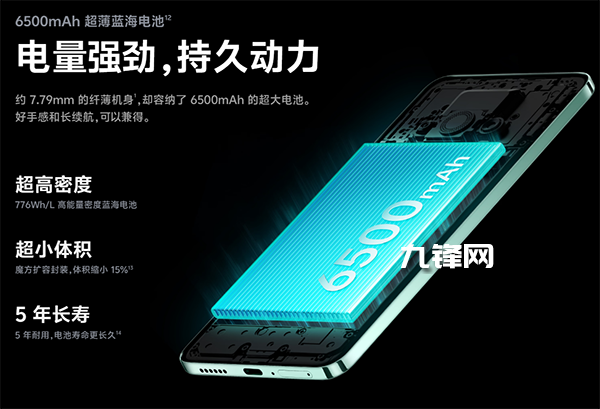 6500mAh超薄藍(lán)海電池,并且是單電芯設(shè)計,并且是具有776Wh/L高能量密度。