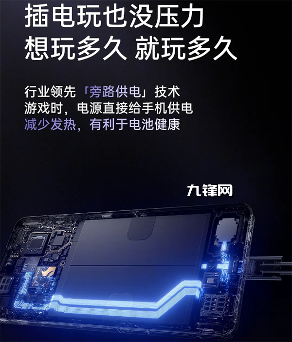 另外,該機(jī)還引入了“旁路充電”功能,該功能在游戲模式下啟動(dòng),能夠直接將電源分流為手機(jī)供電,從而繞過了電池的充電過程,能有效減少發(fā)熱,有利于電池健康。