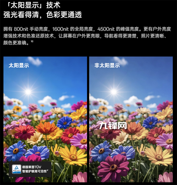 屏幕支持太陽顯示功能,實(shí)測全局亮度1569nit,在室外刺眼陽光環(huán)境下也能看清屏幕,還能根據(jù)環(huán)境光自動調(diào)整亮度和對比度,增強(qiáng)畫面的色彩飽和度,提升室外顯示的色彩準(zhǔn)確度。同時在低亮度環(huán)境中,也能進(jìn)行亮度降低,避免屏幕顯示刺眼的情況。