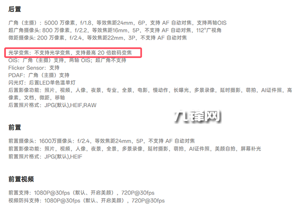 從鏡頭的配置上可以看出,它是沒有長焦鏡頭的,也不支持光學(xué)變焦,只支持最高20倍數(shù)碼變焦。