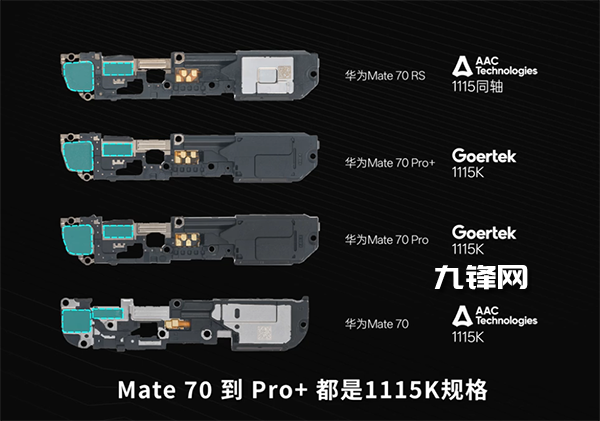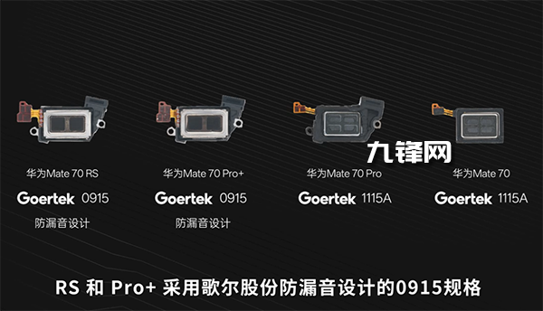 雙,華為Mate70Pro+配置的是立體聲雙揚聲器,頂部是歌爾聲學的0915規(guī)格,底部是歌爾聲學的1115K規(guī)格。