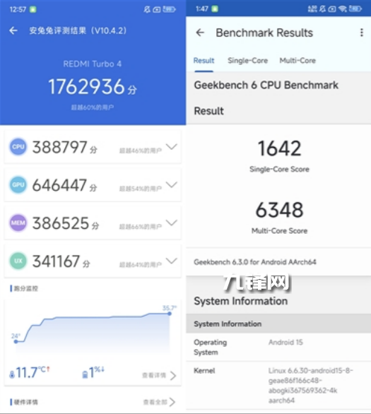 176萬分,紅米Turbo4搭載天璣8400-Ultra處理器,根據(jù)安兔兔軟件的測試,該機的跑分在176萬左右,Geekbench6單核性能1642分,多核性能6348分,多核能力同比有著近18.2%的性能提升。