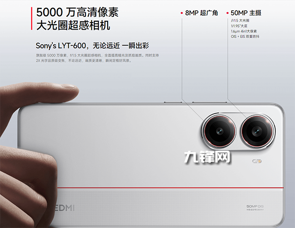 1/1.95英寸索尼LYT600,紅米Turbo4配置的是5000萬(wàn)像素的主攝,并且采用的是1/1.95英寸索尼LYT600傳感器。