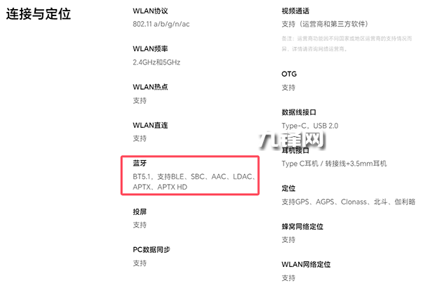 藍牙方面,該機配置的是藍牙5.1,并且支持BLE、SBC、AAC、LDAC、APTX、APTX HD。