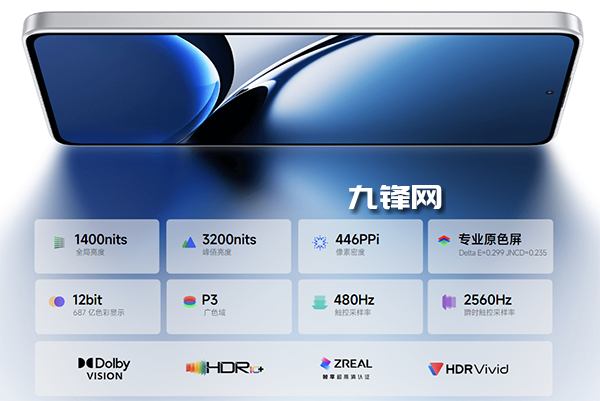 屏幕上搭載了一塊6.67英寸的1.5K高亮護(hù)眼屏,全局亮度高達(dá)1400尼特、峰值亮度3200尼特,支持12比特色深,色準(zhǔn)△E不到3,最高刷新率為120Hz,同時支持480Hz的觸控采樣率和2560Hz的瞬時采樣率,屏幕素質(zhì)在一眾中端機(jī)型中可圈可點(diǎn)。