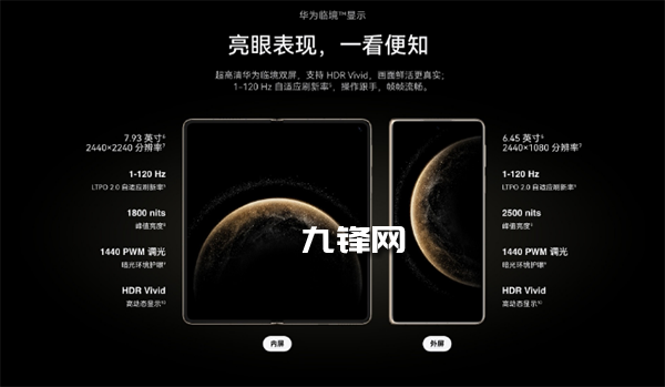 華為Mate X6的內(nèi)屏尺寸達(dá)7.93英寸,分辨率為2440x2240,峰值亮度為1800尼特,同樣支持1-120Hz自適應(yīng)刷新率,也支持1440Hz高頻PWM調(diào)光。