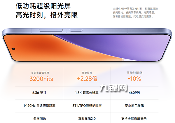屏幕上搭載了一塊分辨率為2670*1200分辨率的6.36英寸的OLED屏幕,使用了全新的M9發(fā)光材質(zhì),能夠做到3200nit的動(dòng)態(tài)亮度,即便是在陽光下這種強(qiáng)光環(huán)境中,依舊能夠保證高亮、常亮,在行業(yè)首次實(shí)現(xiàn)超級(jí)陽光屏應(yīng)對各類環(huán)境。