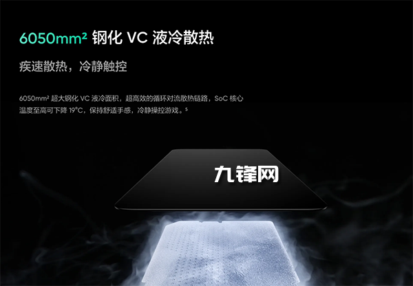 鋼化VC液冷散熱,6050mm2,更加高效的循環(huán)對流散熱鏈路,冷靜操控游戲,帶來舒適手感,實(shí)現(xiàn)溫?zé)岵粻C手。