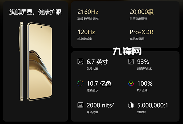并且這塊屏幕支持2160Hz高頻PWM調(diào)光,手動(dòng)最高亮度600nit,陽光下激發(fā)亮度可達(dá)1200nit,在HDR環(huán)境下局部峰值亮度則能夠達(dá)到2000nit。
