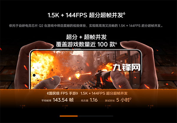 支持,iQOO Neo10 Pro在天璣9400芯片與自研電競芯片Q2的雙芯合作下,可實(shí)現(xiàn)1.5K+144FPS的超分超幀并發(fā),游戲體驗(yàn)越級提升。