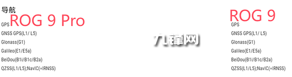 導(dǎo)航方面,ROG 9/ROG 9 Pro都是配置的雙頻GPS(L1/L5)和三頻北斗(B1i/B1c/B2a)。