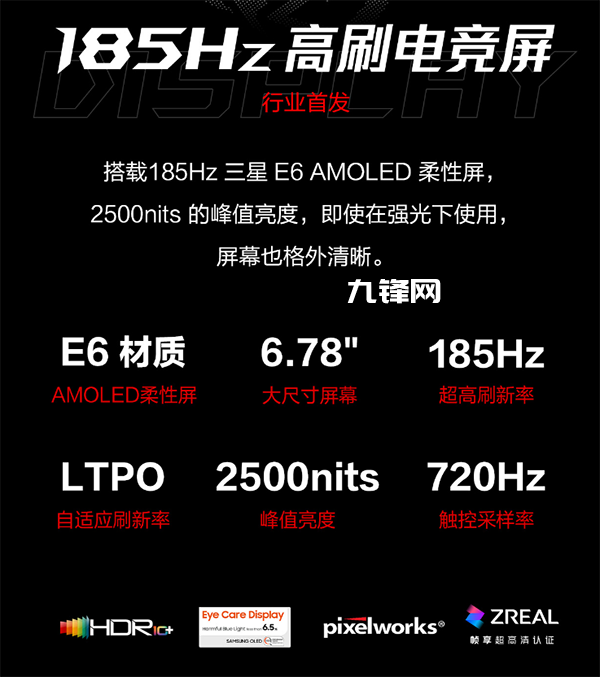 也就是說,ROG 9系列采用一塊6.78英寸的直屏,并且是由三星提供的,三星E6發(fā)光材質(zhì)的OLED屏。