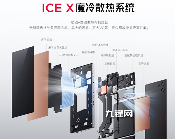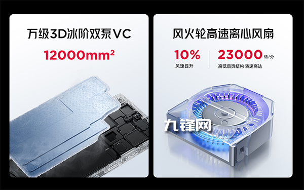 并且手機還內置了一塊12000mm2的3D冰階雙泵VC均熱板,搭配屏下石墨烯,以及背面5200mm2超導銅箔,共同組成ICE X魔冷散熱系統(tǒng),實現(xiàn)整機核心溫度下降21℃。