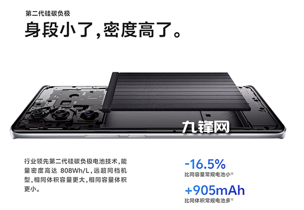 所以這也使得整個(gè)電池的能量密度首次突破808Wh/L,這對(duì)于那些需要長(zhǎng)時(shí)間使用手機(jī),或者經(jīng)常外出無法及時(shí)充電的用戶來說,無疑是一個(gè)巨大的福音。
