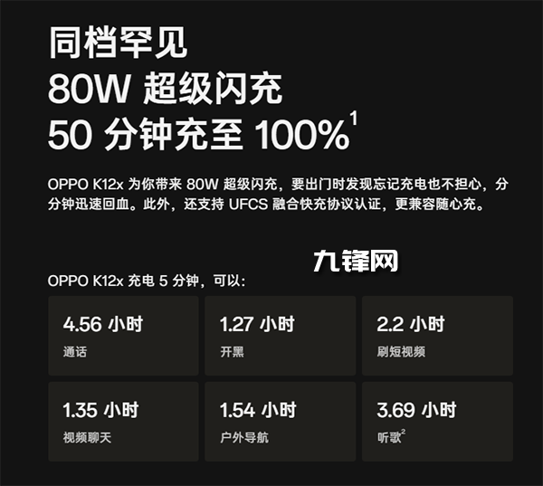 即便手機沒電也無需擔心,OPPO K12x的80W超級閃充充電也非???,從沒電到滿電僅需50分鐘,這充電速度在同價位的手機中屬于很頂?shù)乃搅恕?