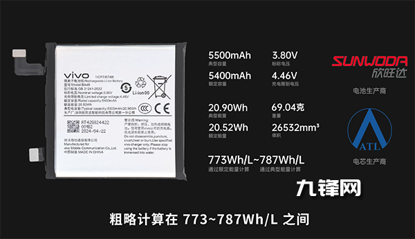 773Wh/L-787Wh/L,vivo X100 Ultra采用了全新半固態(tài)二代硅藍(lán)海電池,電池容量依然做到了5500mAh,電池能量密度在773Wh/L-787Wh/L之間。