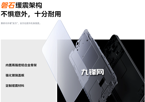 抗摔,iQOO Z9x配置了磐石緩震架構(gòu)和高強度鋁合金骨架,搭配強化玻璃蓋板和定制緩震材料,提升了整機的實用性和耐用性。