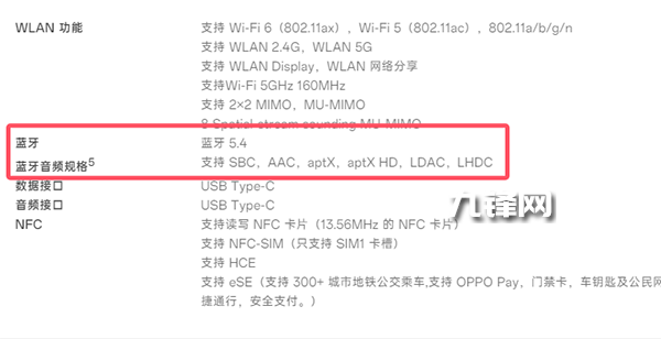 藍(lán)牙方面,該機(jī)配置的是藍(lán)牙5.4,并且支持支持 SBC,AAC,aptX,aptX HD,LDAC,LHDC。