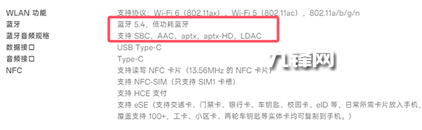 藍牙5.4,低功耗藍牙,藍牙音頻規(guī)格上支持SBC,AAC,aptx,aptx-HD,LDAC。