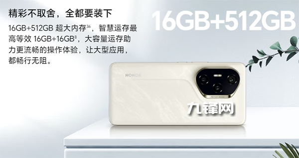 支持,榮耀300 Pro提供了最高16GB的內(nèi)存和512GB的存儲選項,并且支持最高16GB的運存擴展技術(shù)(12GB最高支持12GB的運行擴展),相當于是最高支持16GB+16GB組成的32GB運存擴展。