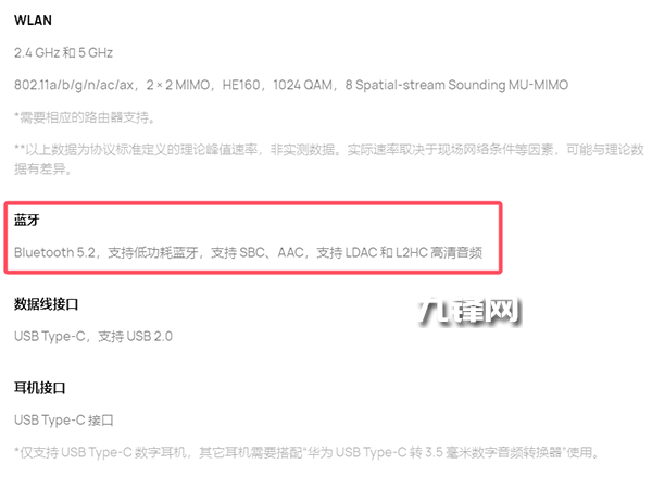 藍牙5.2,支持低功耗藍牙,并且支持SBC、AAC,支持LDAC和L2HC高清音頻。