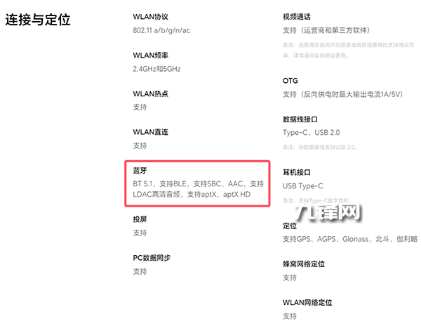 藍牙方面,該機的配置的是藍牙5.1,支持BLE,并且支持SBC、AAC,支持LDAC高清音頻,支持aptX,aptX HD。