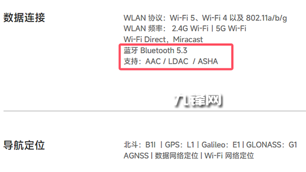 藍牙方面,配置的是藍牙5.3,并且支持AAC/LDAC/ASHA。
