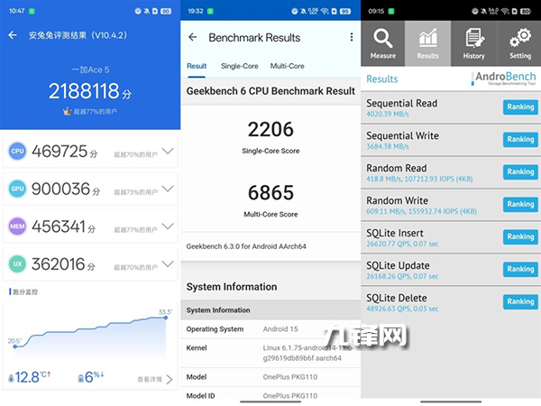 最后在閃存測(cè)試中,順序讀取速度為4020.39MB/s,順序?qū)懭胨俣葹?684.38MB/s,隨機(jī)讀取速度418.8MB/s,隨機(jī)寫入速度為609.11MB/s,屬于UFS4.0的水準(zhǔn)。