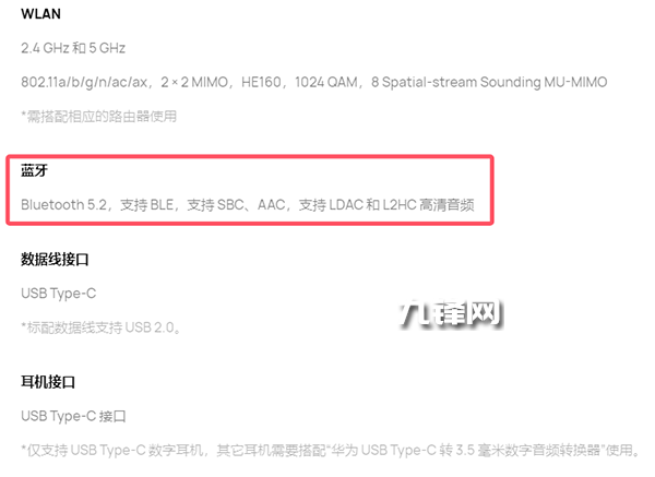 藍牙5.2,并且支持BLE,支持SBC、AAC,支持LDAC和L2HC高清音頻。
