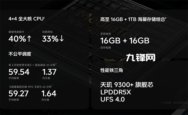 在性能上搭載4nm制程天璣9300+旗艦芯片,擁有4個(gè)Cortex-X4超大核和4個(gè)Cortex-A720大核,主頻最高3.4GHz,能夠充分釋放全大核CPU架構(gòu)的強(qiáng)勁性能。
