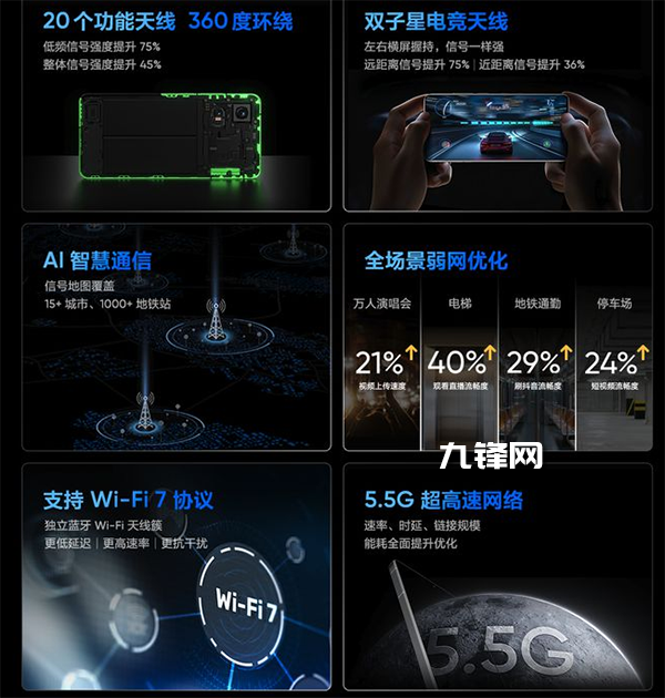 支持,realme真我GT6不僅支持5.5G高速網(wǎng)絡(luò),并且有360度的環(huán)繞天線,還有橫握雙電競天線,并且支持WiFi7協(xié)議。