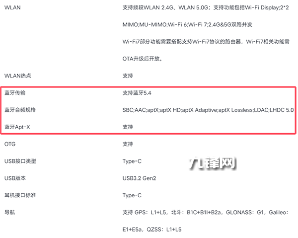 藍(lán)牙5.4,并且支持SBC、AAC、aptX、aptX HD、aptX Adaptive、aptX Lossless、LDAC、LHDC 5.0這些音頻規(guī)格。