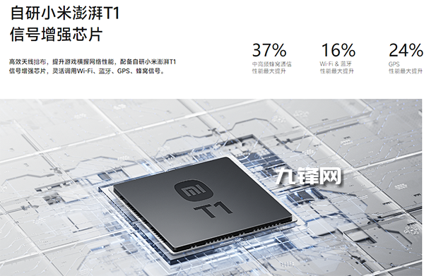 它還還搭載了小米自研澎湃T1芯片,這枚信號增強芯片,不僅能夠提升中高頻蜂窩通信性能,還能提升WIFI、藍牙以及GPS最大性能,也同時在展示了中企出色的自研能力。